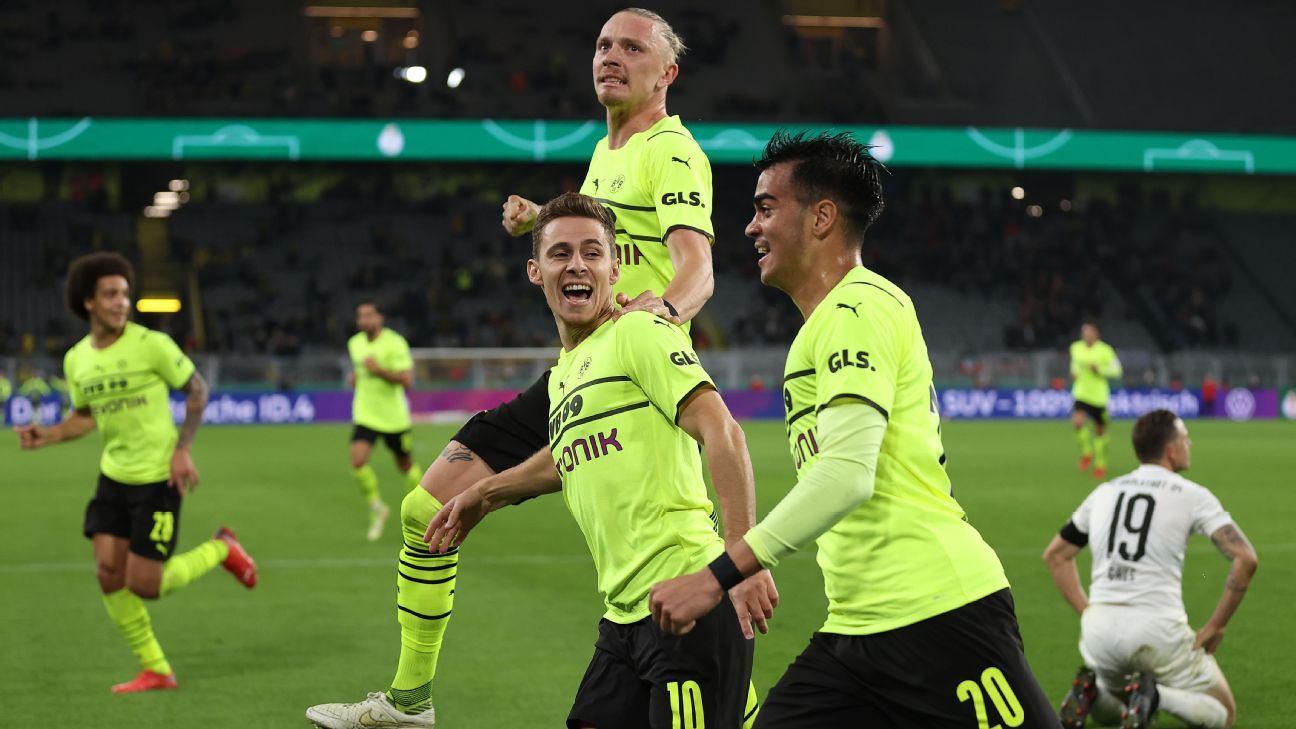 Dortmund face Leipzig in two competitions the Bundesliga and the DFB-Pokal final this week. Germany DFB Pokal 20212022 table full stats livescores. Bayern Munichs terrific start to the 202122 season was thrown out the window after a star-studded side were thrashed 5-0 by Borussia Monchengladbach in the DFB-Pokal.
